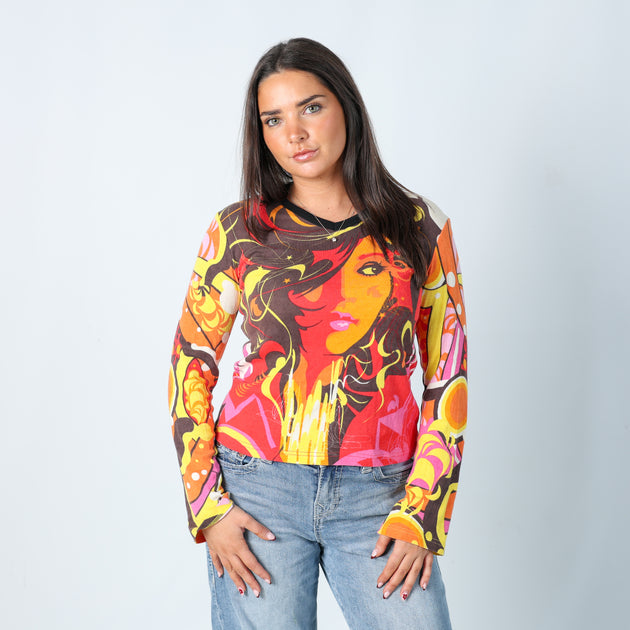 Multi Colured y2ks Custo Barcelona Long Sleeve Top (M)
