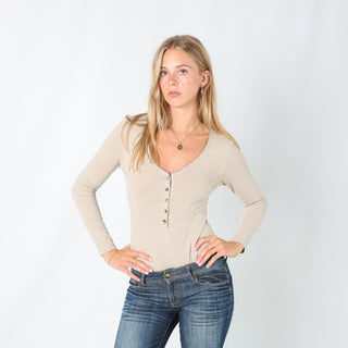 Beige 90s Rosso Diva Long Sleeve Top Bodysuit (M)