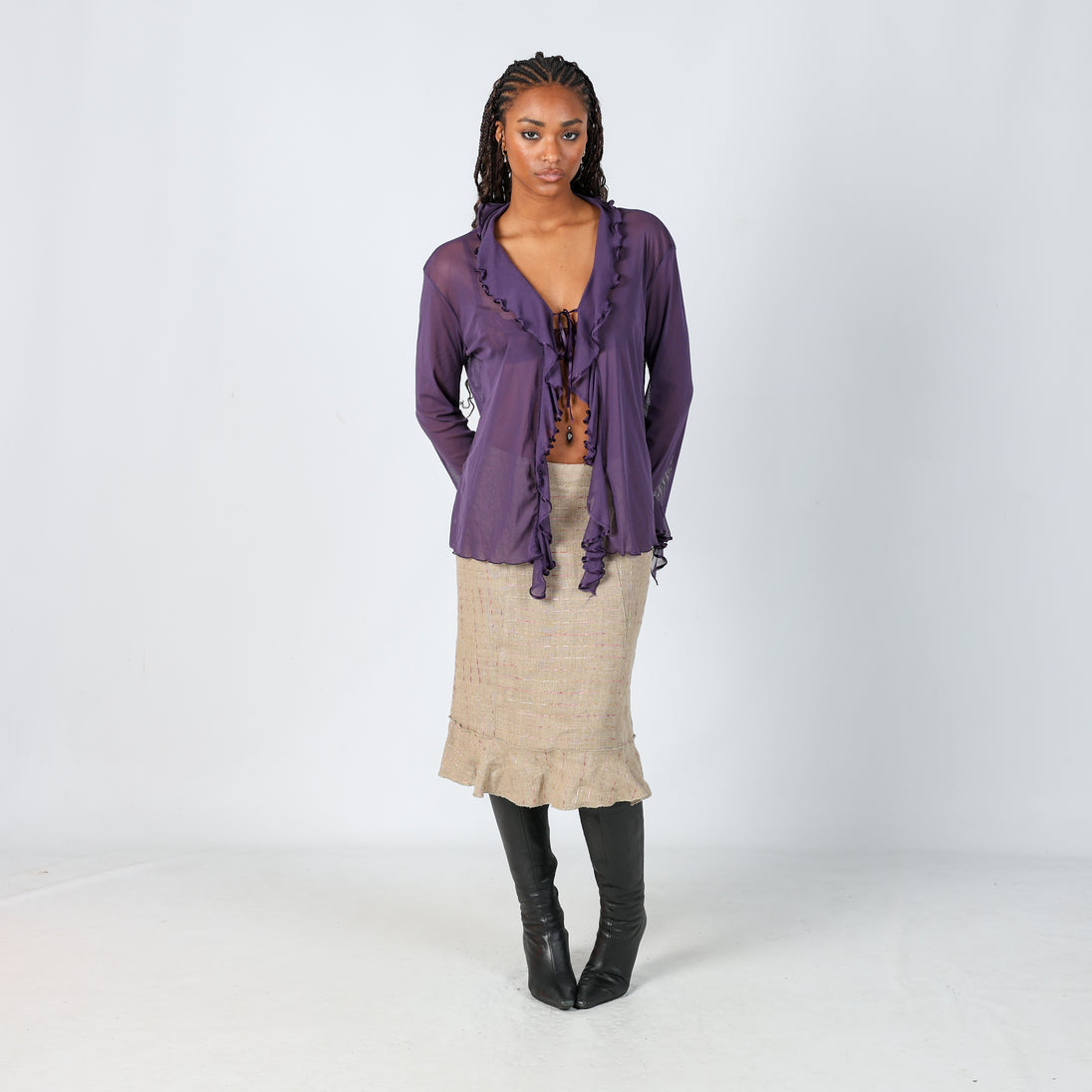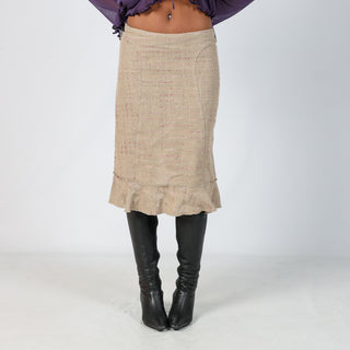 Beige y2ks Ethic Woven Midi Skirt (S)