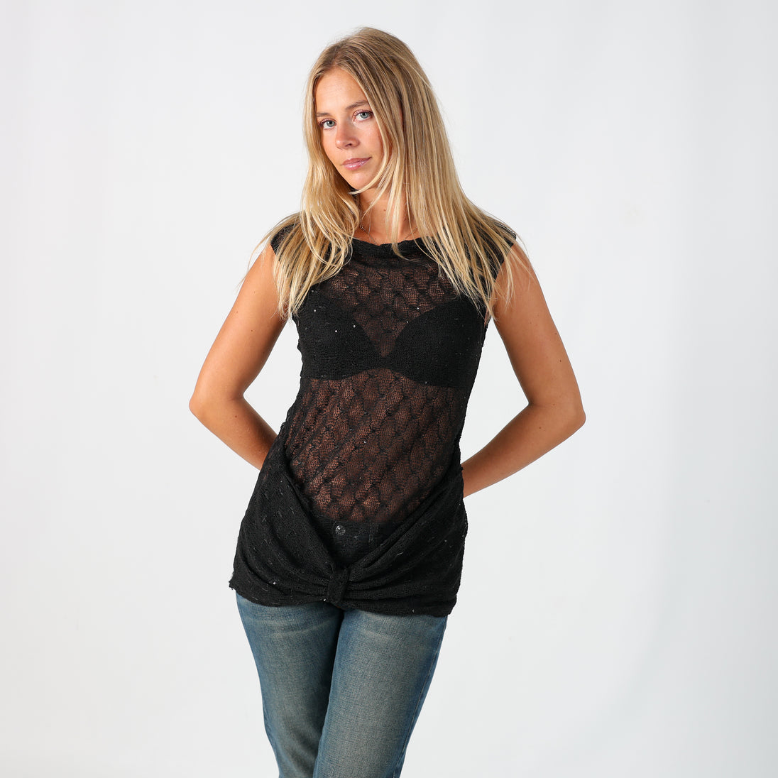 Black y2ks Blu Deise Blouse Sheer Sequin (S)