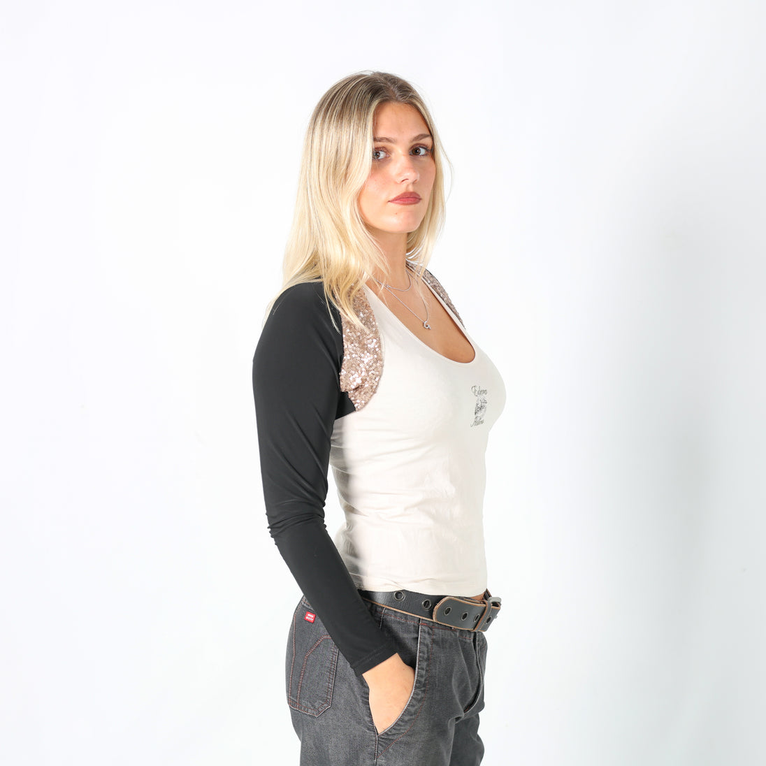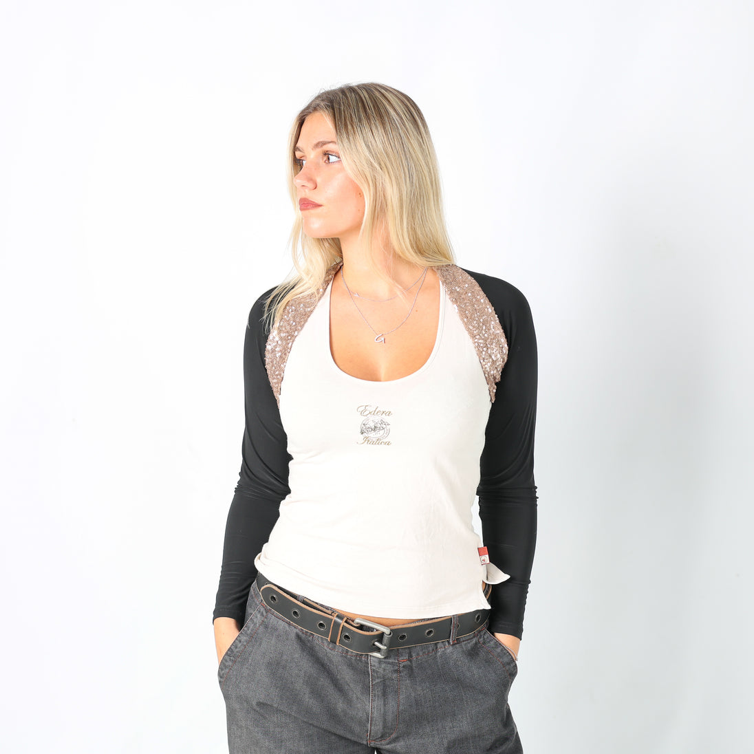 Black y2ks Made in Italy Long Sleeve Top Sequin Detail (M)