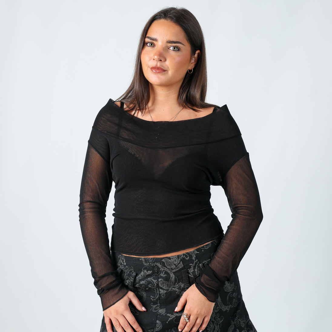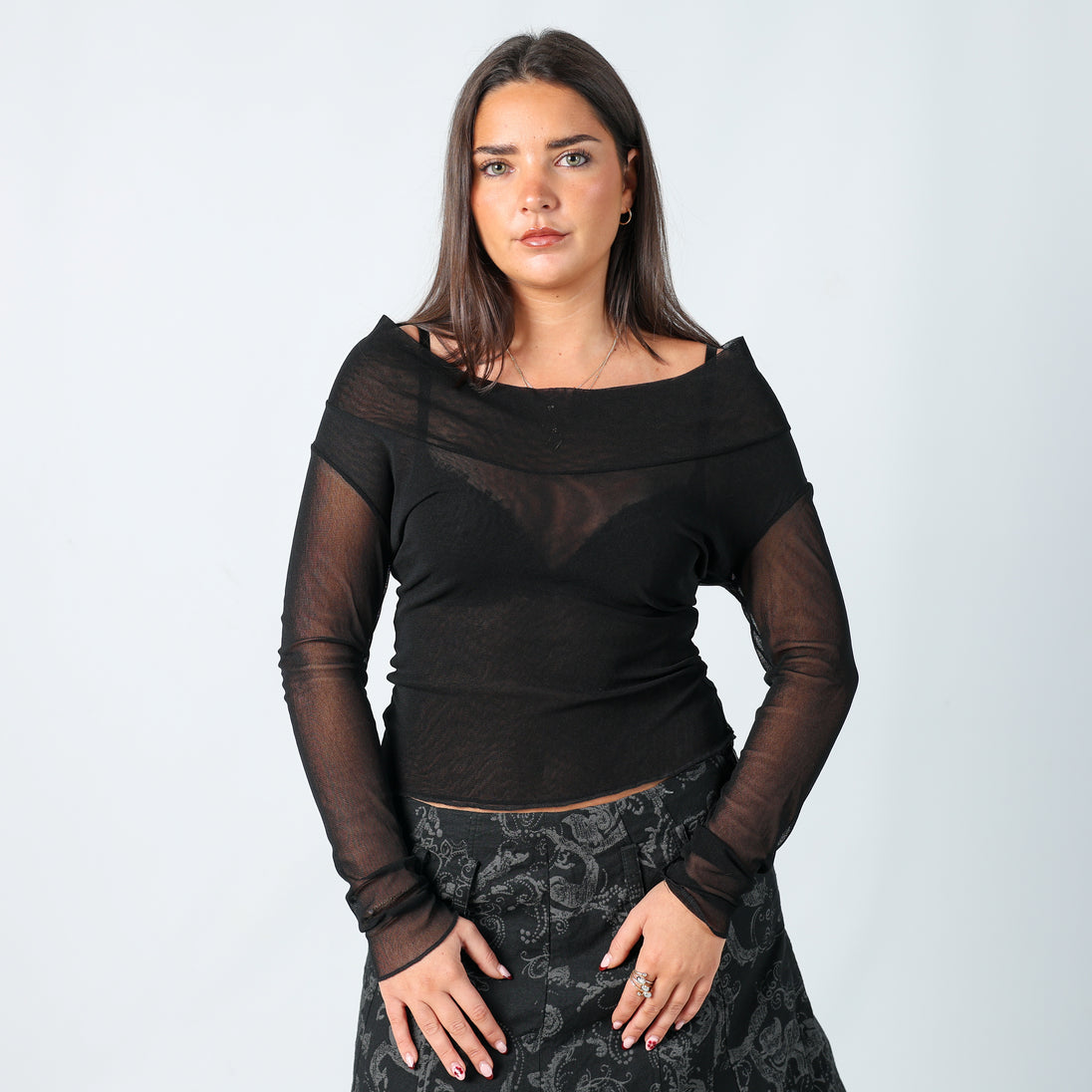 Black y2ks Paola M Long Sleeve Top Sheer (8)