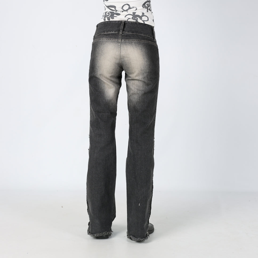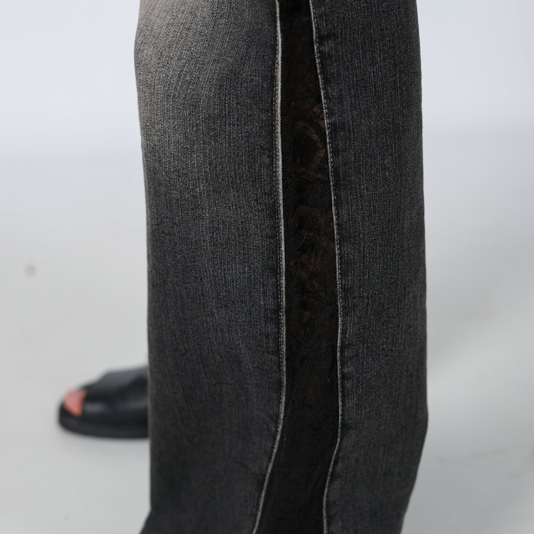 Charcoal Grey y2ks Orza Studio Flare Jeans Statement Belt Lace Detail (6)