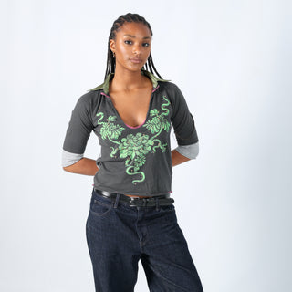 Charcoal Grey y2ks Zu Elements Long Sleeve Top Embellished (M)
