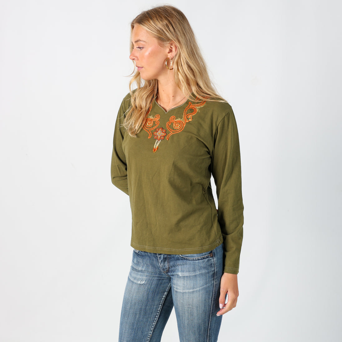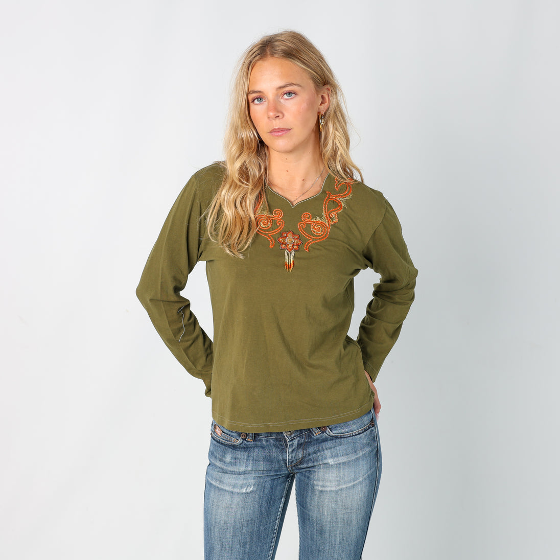 Dark Green y2ks Unbranded Long sleeve top Beaded (M)