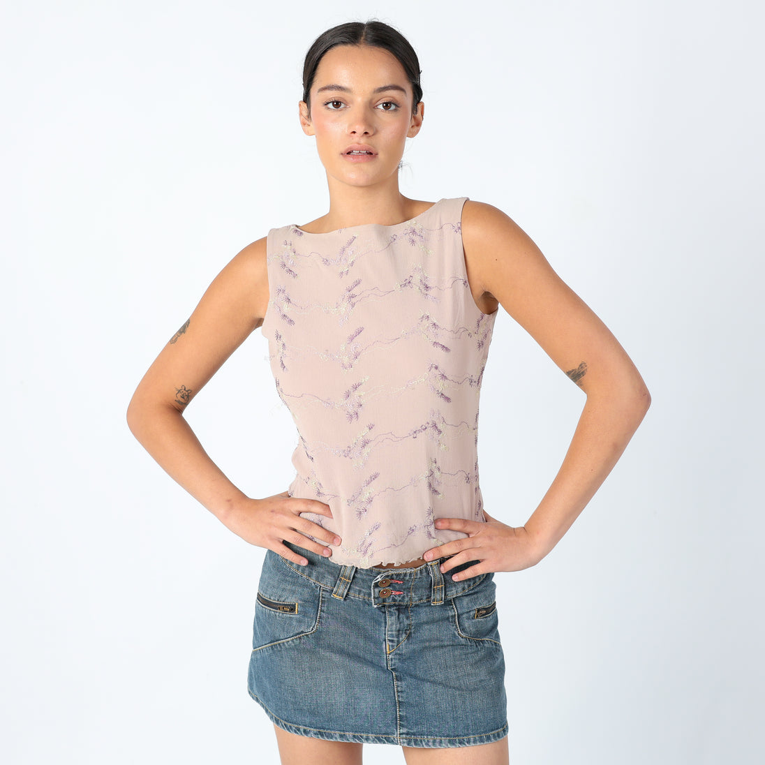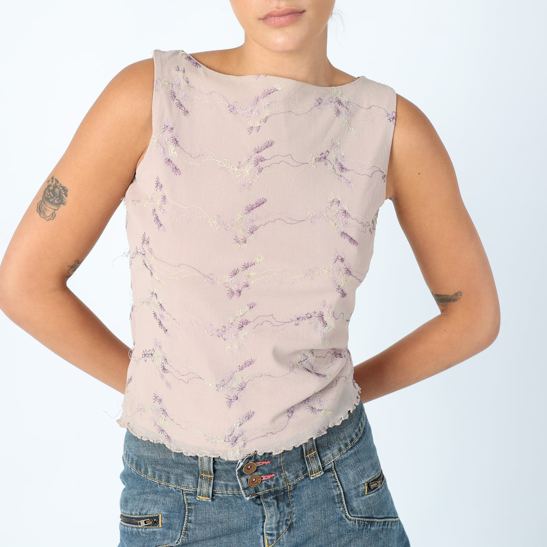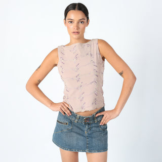 Lilac Purple 90s Unbranded Woven Top Floral Cami, Rachel from Friends, Cute (M)