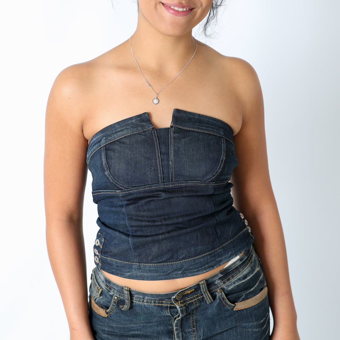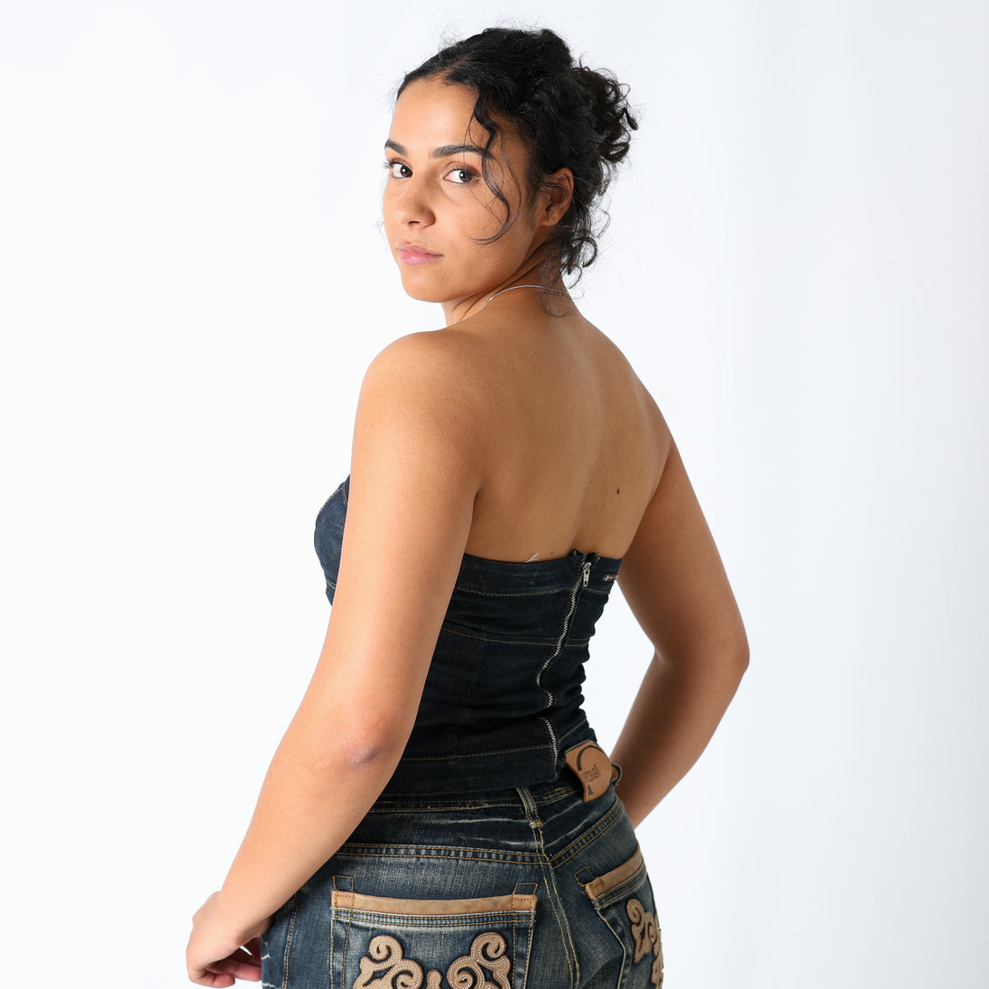Navy Blue 90s Sportmax Code Corset Denim Zip Up (M)