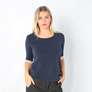 Navy Blue y2ks Burberry Long Sleeve Top (M)