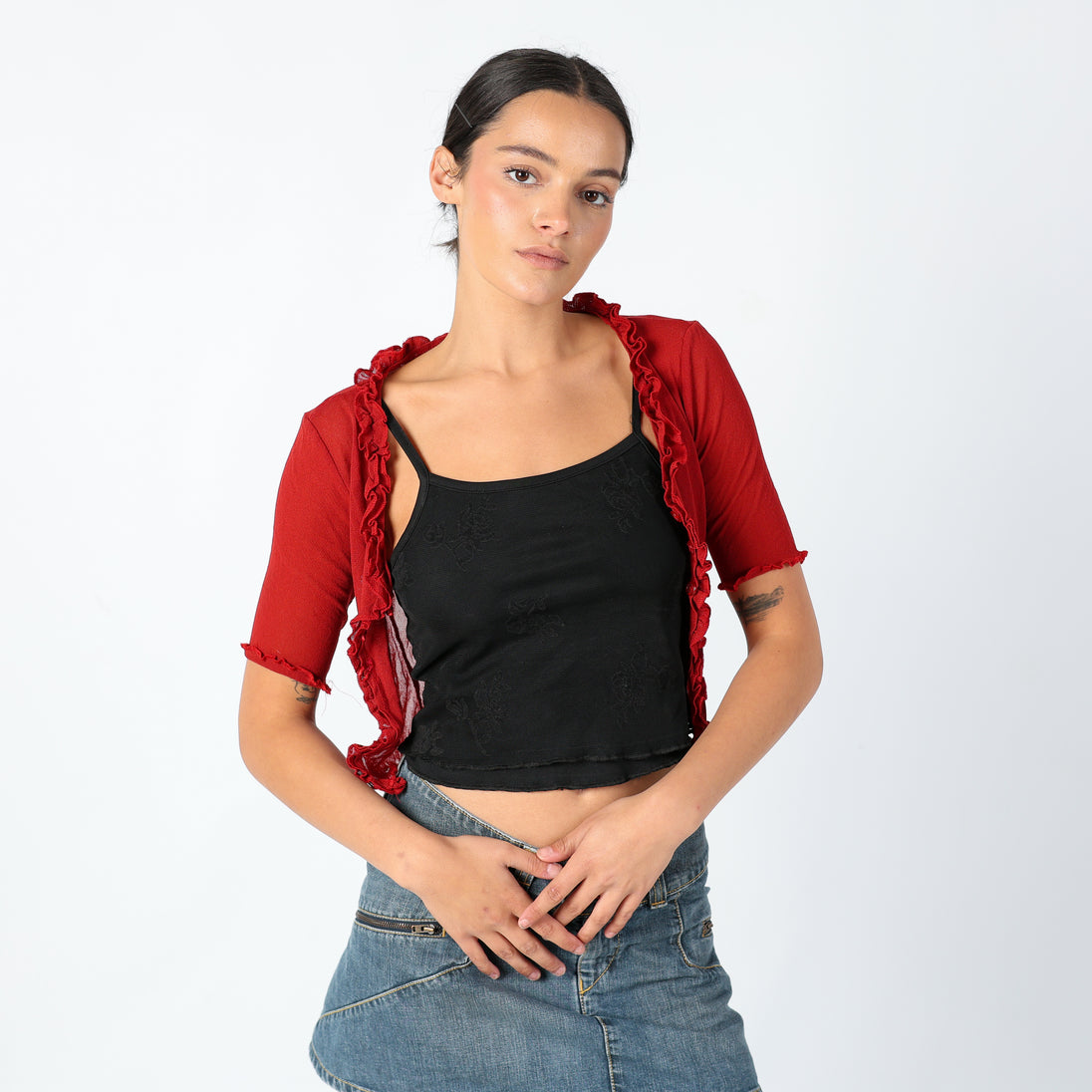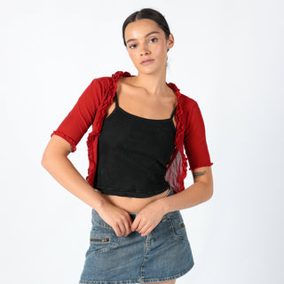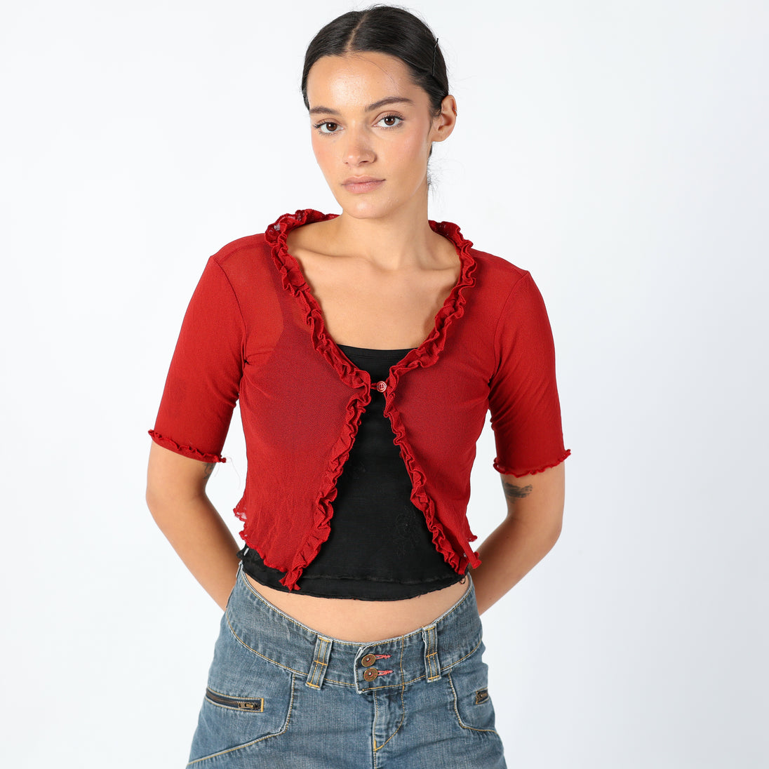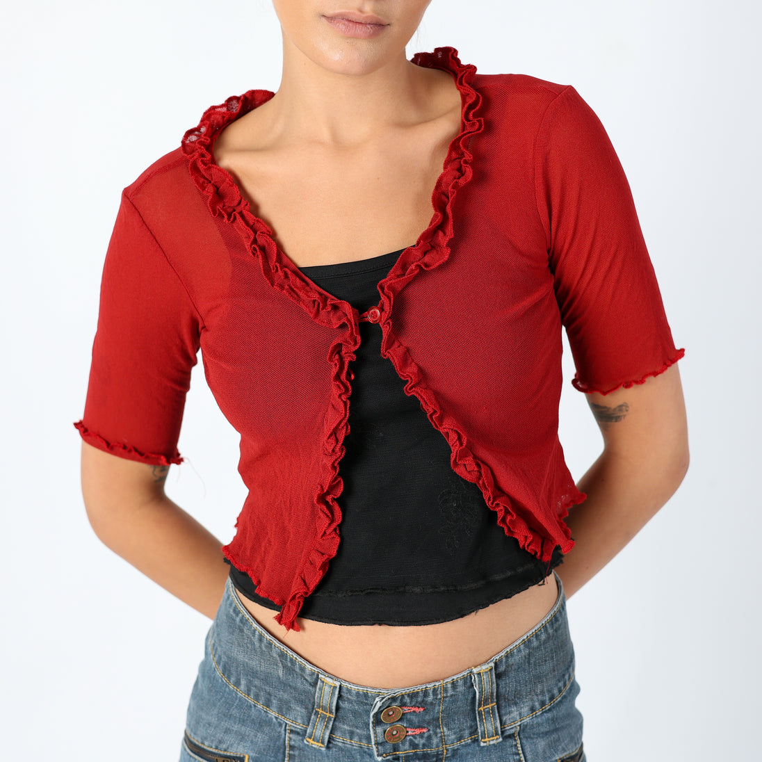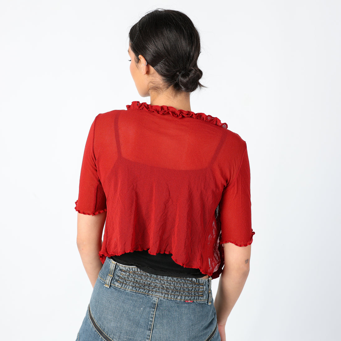 Red 90s Unbranded Mesh Top Euro Summer, Sheer Cardigan, Chic (S)