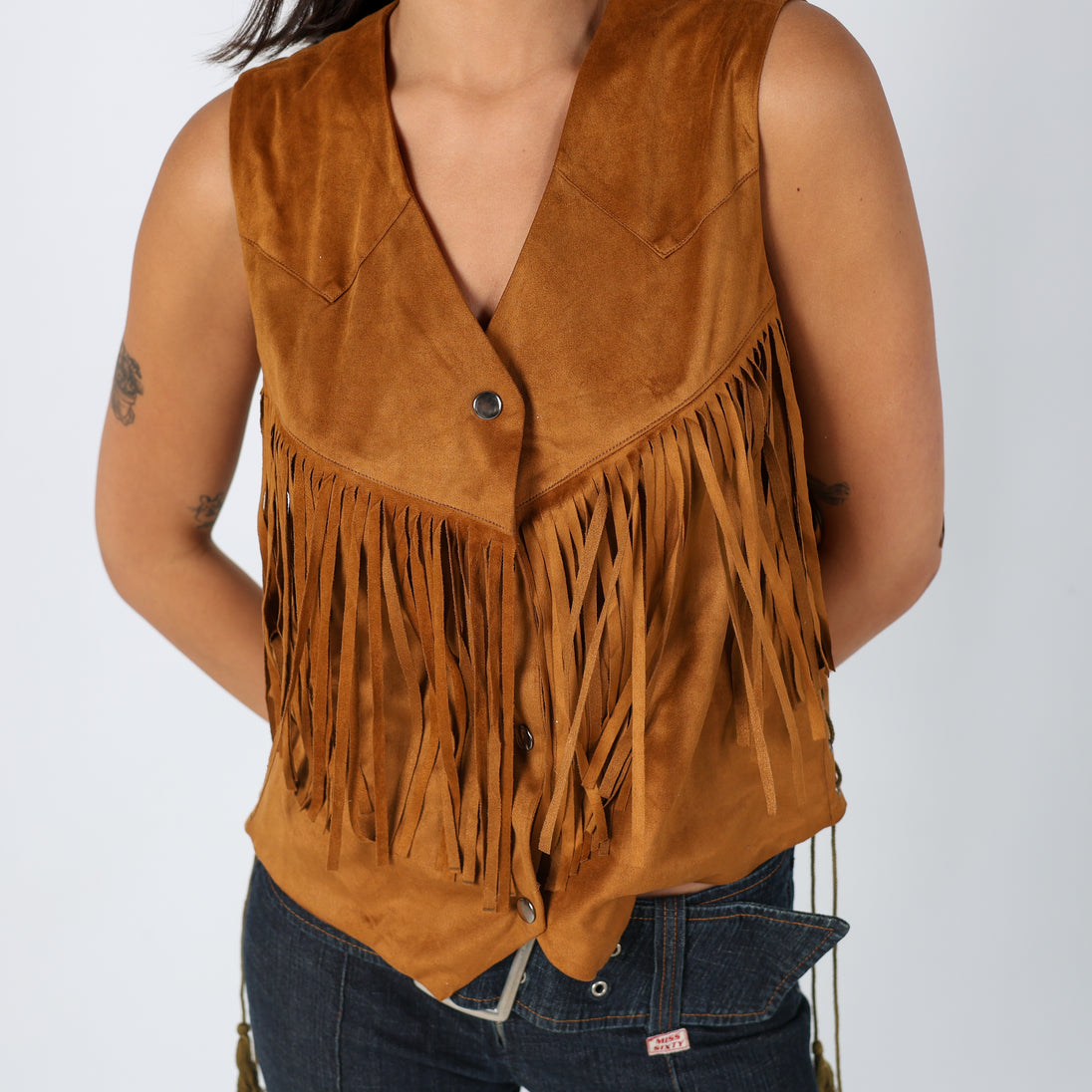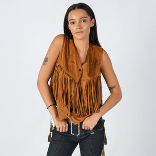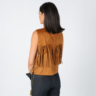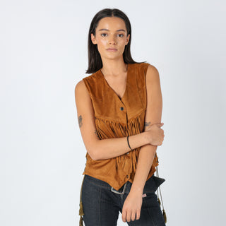 Tan y2ks Jovonna Woven Vest Tassle Suede Waistcoat (14)