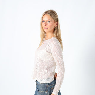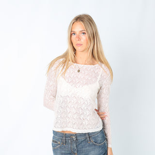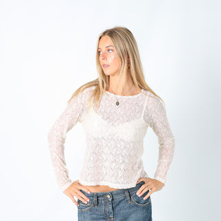 White y2ks My Profile Long Sleeve Top Lace Sheer (M)