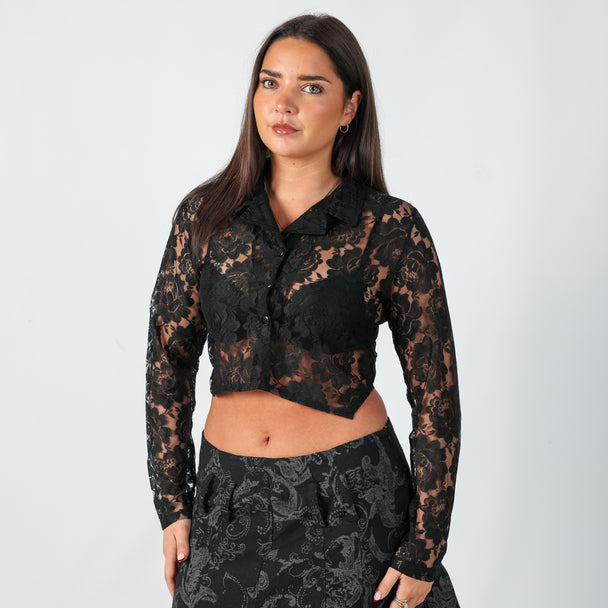 Black y2ks Unbranded Woven Top Embroidered (S)