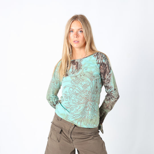 Turquoise y2ks Just Cavalli Long Sleeve Top Printed (L)