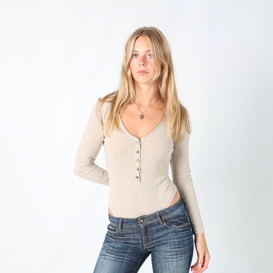 Beige 90s Rosso Diva Long Sleeve Top Bodysuit (M)