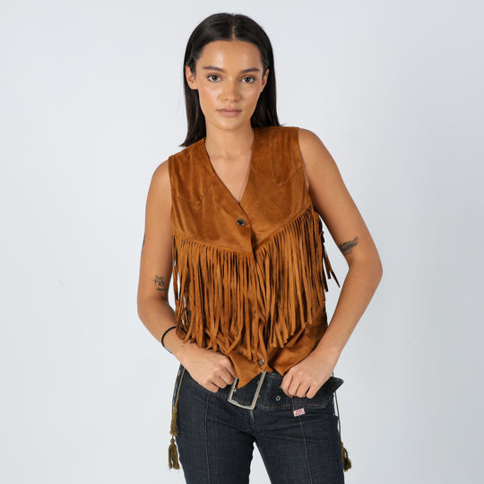 Tan y2ks Jovonna Woven Vest Tassle Suede Waistcoat (14)