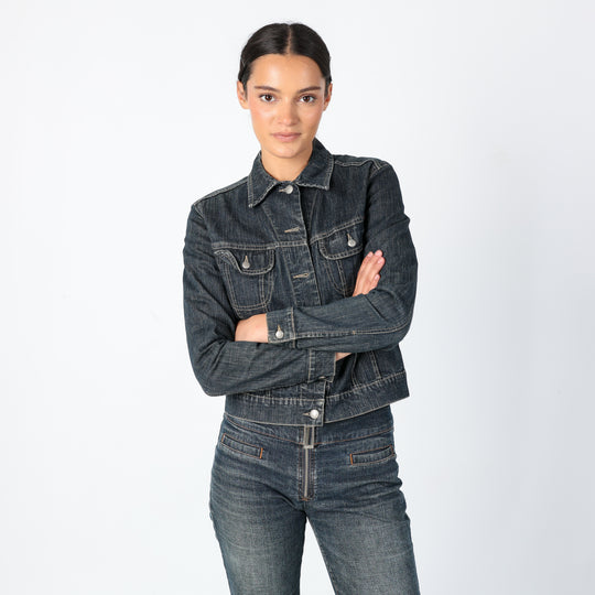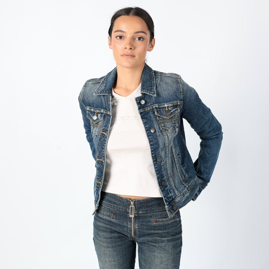 Blue y2ks Sancred Denim Jacket Pocket Detailing, Unique y2k (M)