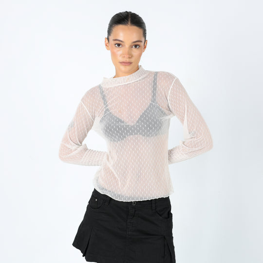 Cream y2ks Unbranded Mesh Top Sheer Long Sleeve (8)