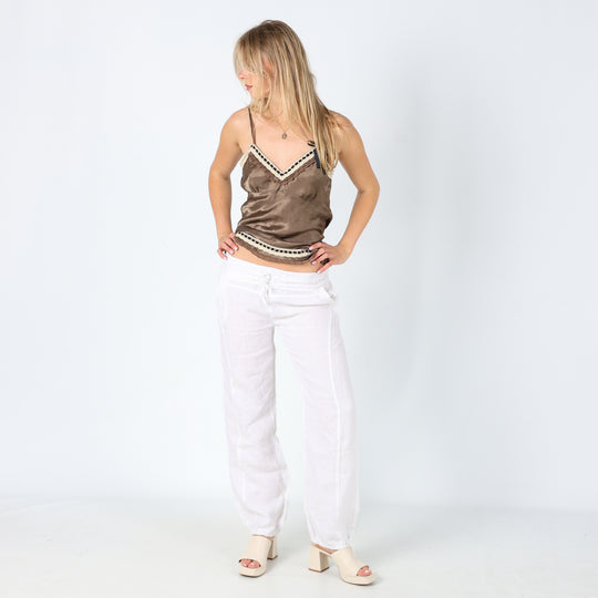 Ivory 90s Unbranded Woven Trousers Linen (S)