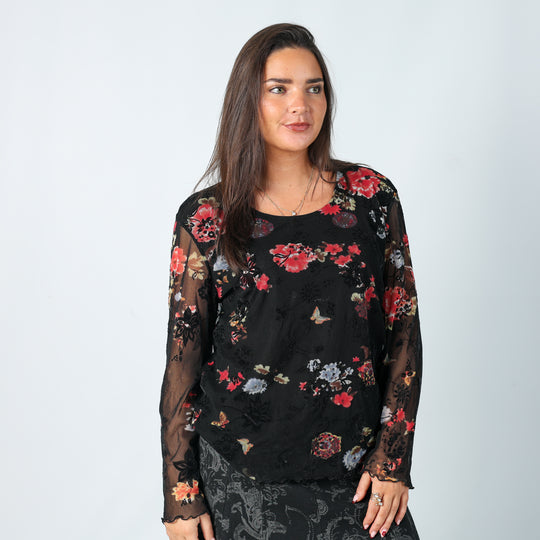 Black y2ks Lewinger Long Sleeve Top Floral (M)