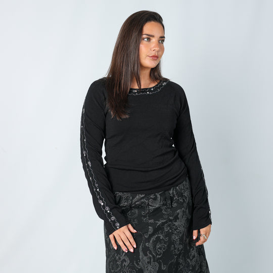Black y2ks My Time Long Sleeve Top Sequin (M)