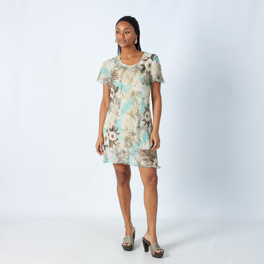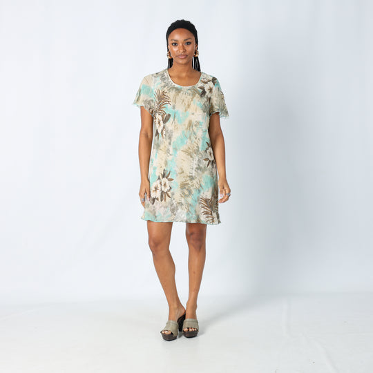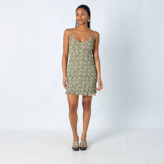 Khaki Green 90s PHARD Printed Woven Mini Dress (S)