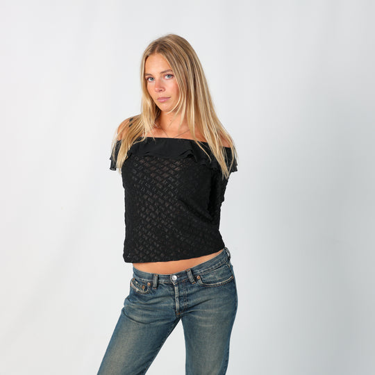 Black y2ks Unbranded Blouse Semi Sheer (M)
