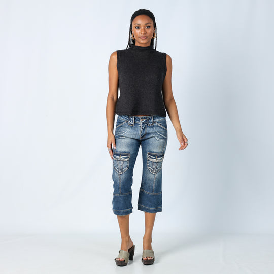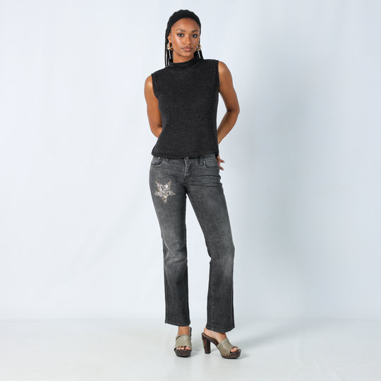 Charcoal Grey 90s Moschino Flare Jeans Star Detail (8)