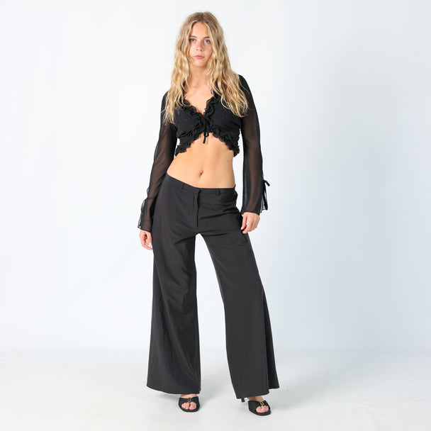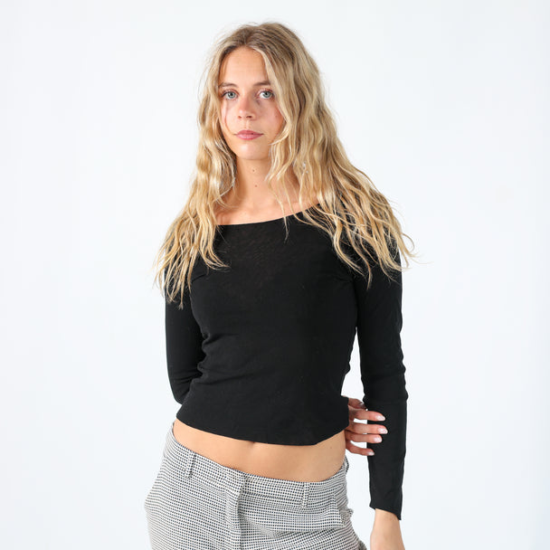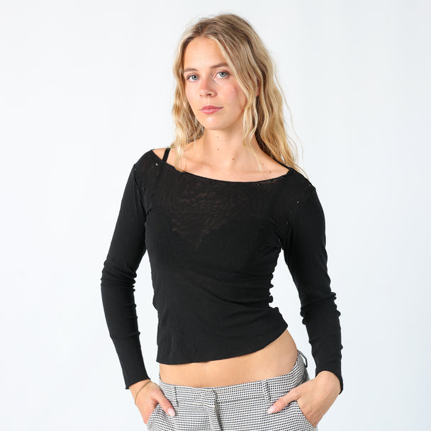 Black 90s PennyPull Long Sleeve Top Semi Sheer (S)