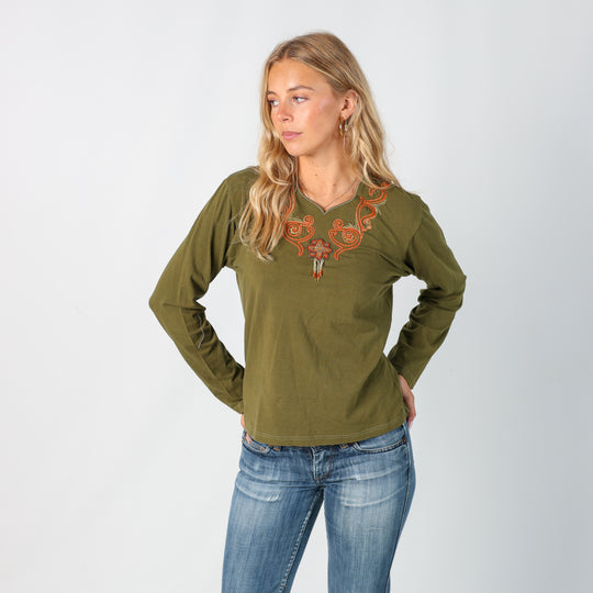 Dark Green y2ks Unbranded Long sleeve top Beaded (M)