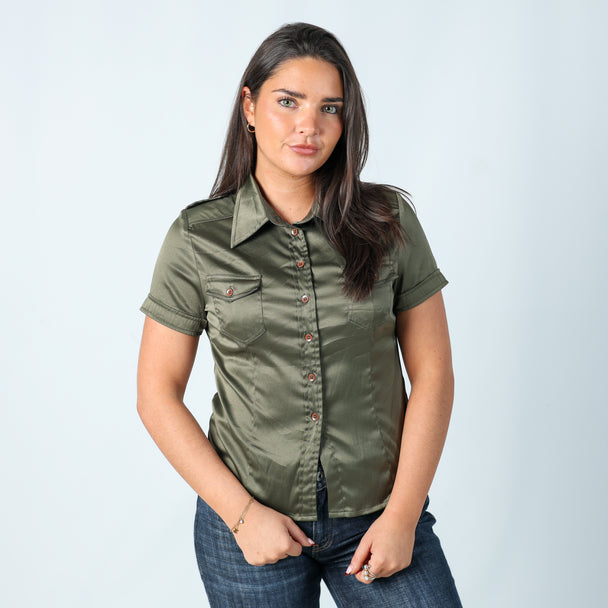 Khaki Green y2ks Street One Long Sleeve Top Sequin (S)
