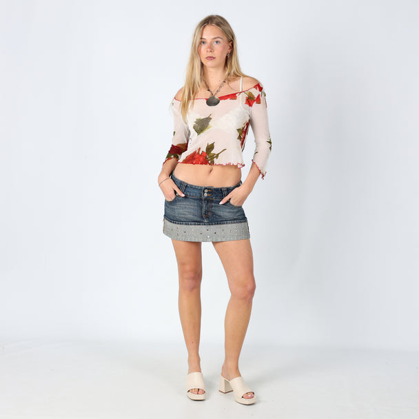 Brown y2ks Terranova Woven Mini Skirt Cute, Floral Print Rara Skirt, Summer (S)