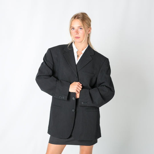 Black 90s Versace Blazer Pinstripe Shoulder Pads (L)