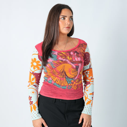 Multi Colured y2ks Custo Barcelona Long Sleeve Top (S)