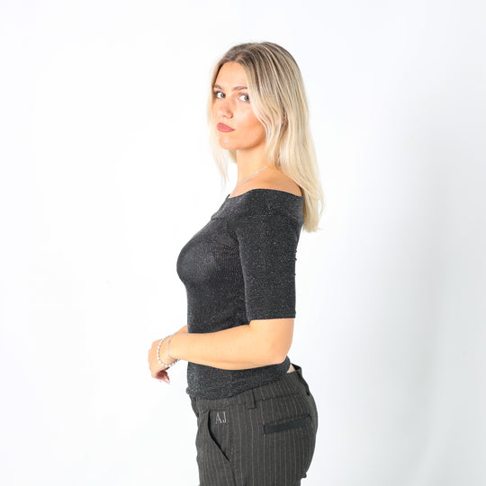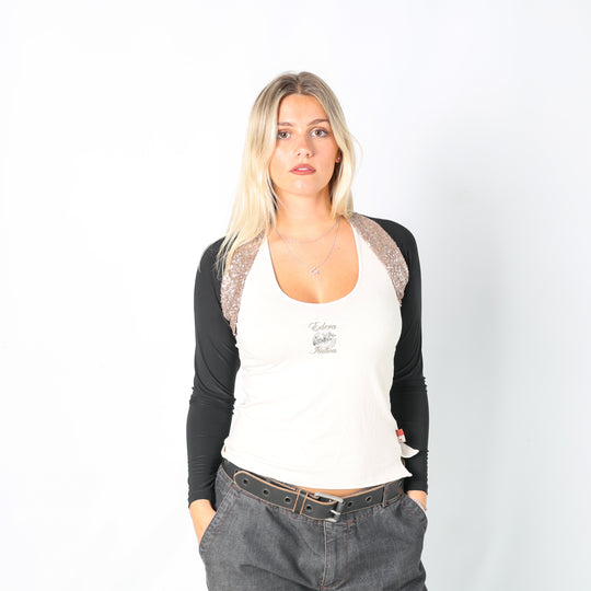 Black y2ks Made in Italy Long Sleeve Top Sequin Detail (M)