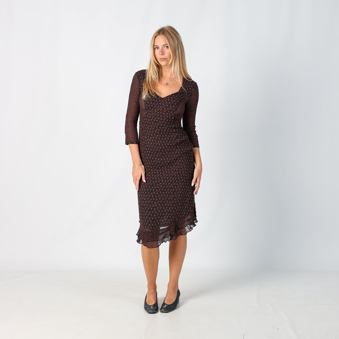 Black y2ks Ethic Printed Woven Midi Dress Floral (S)