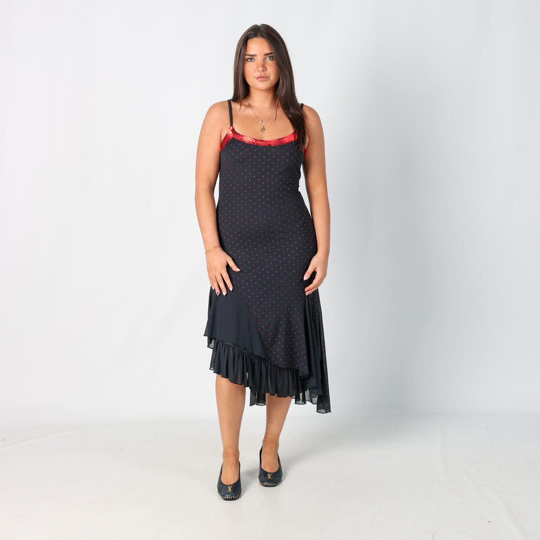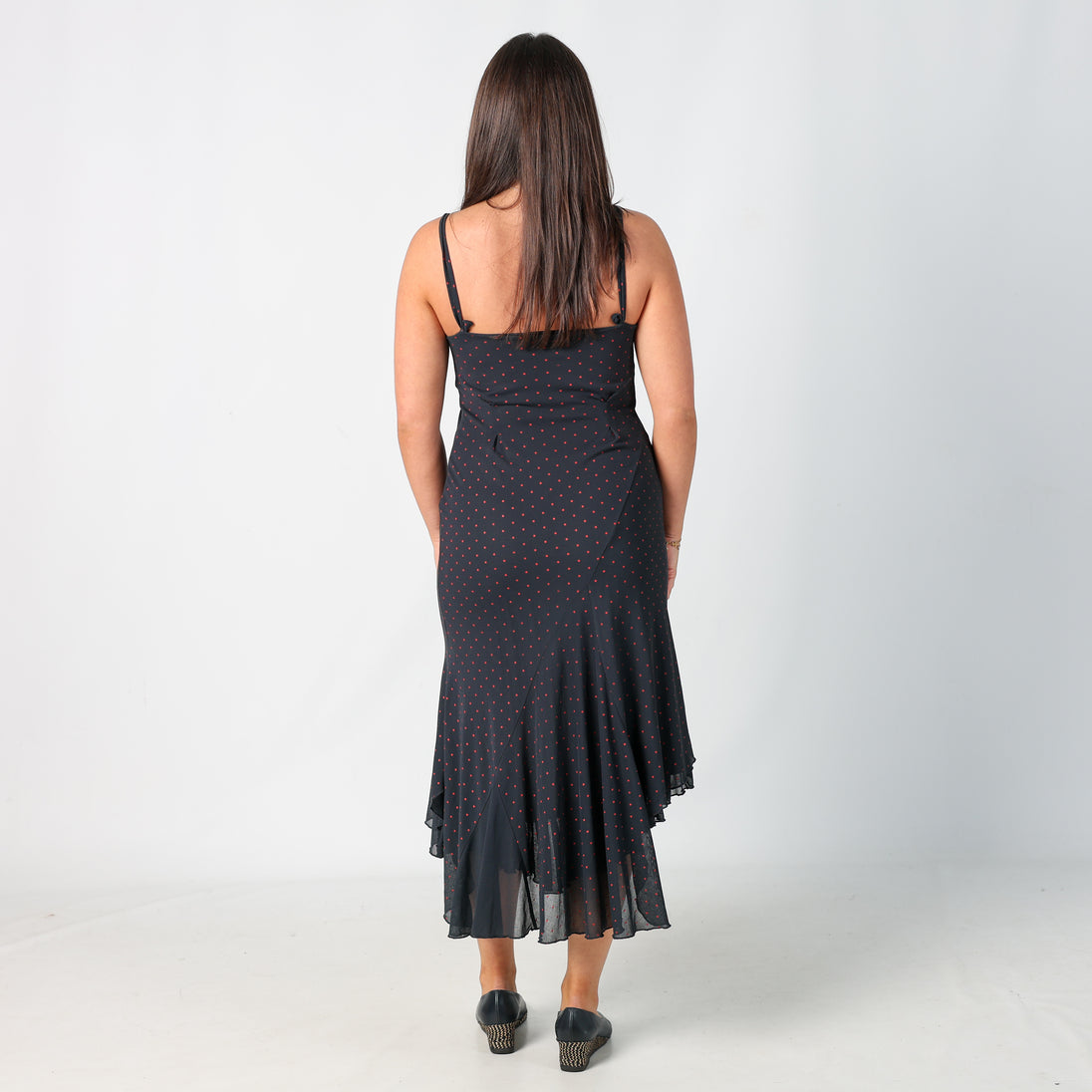 Black y2ks Marie Galante Woven Midi Dress Polkadot Sequin (S)
