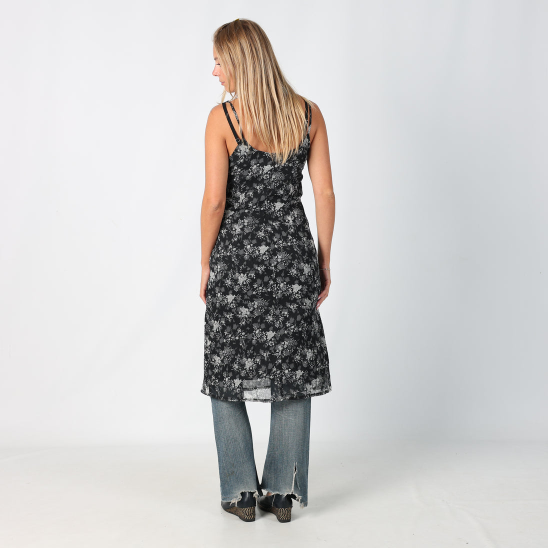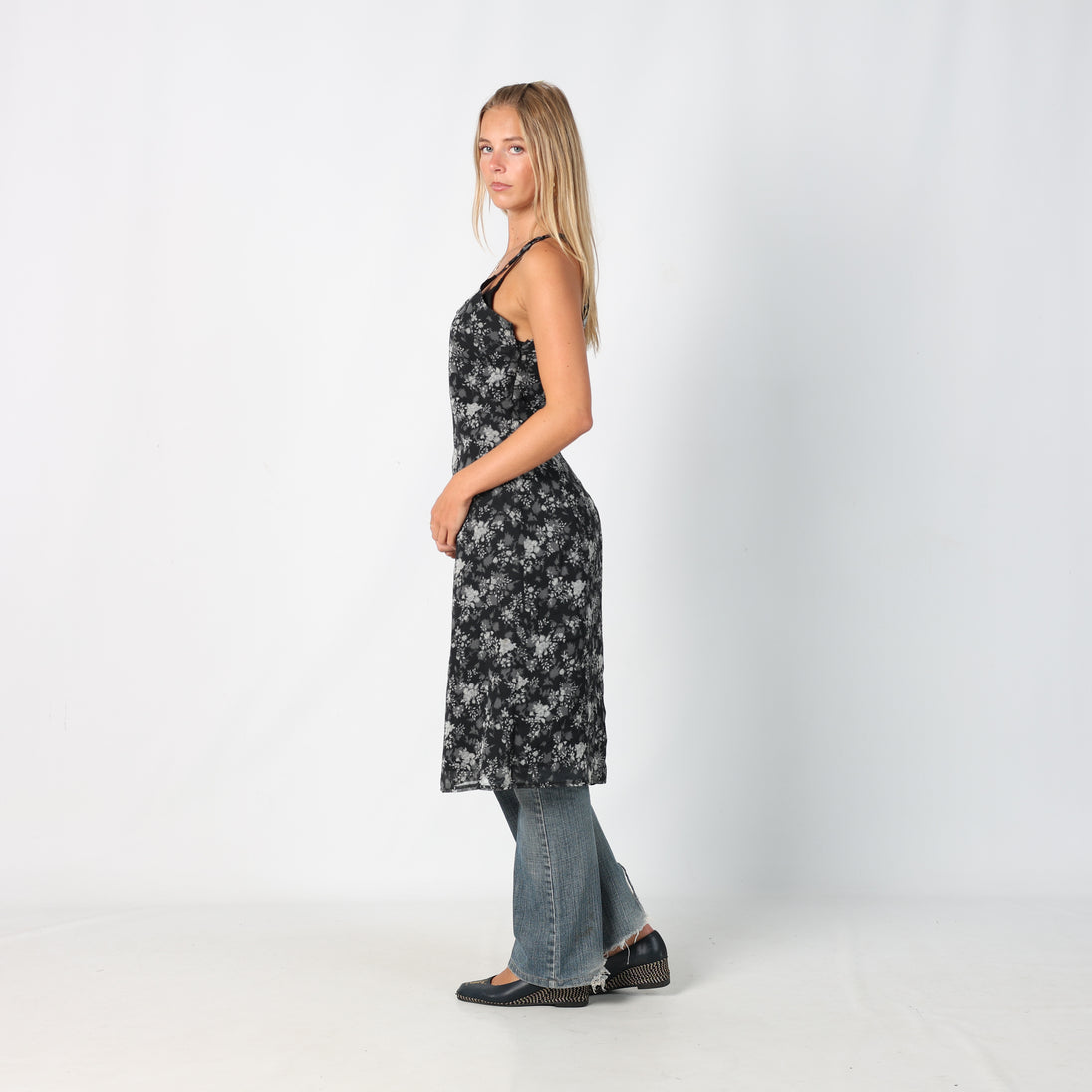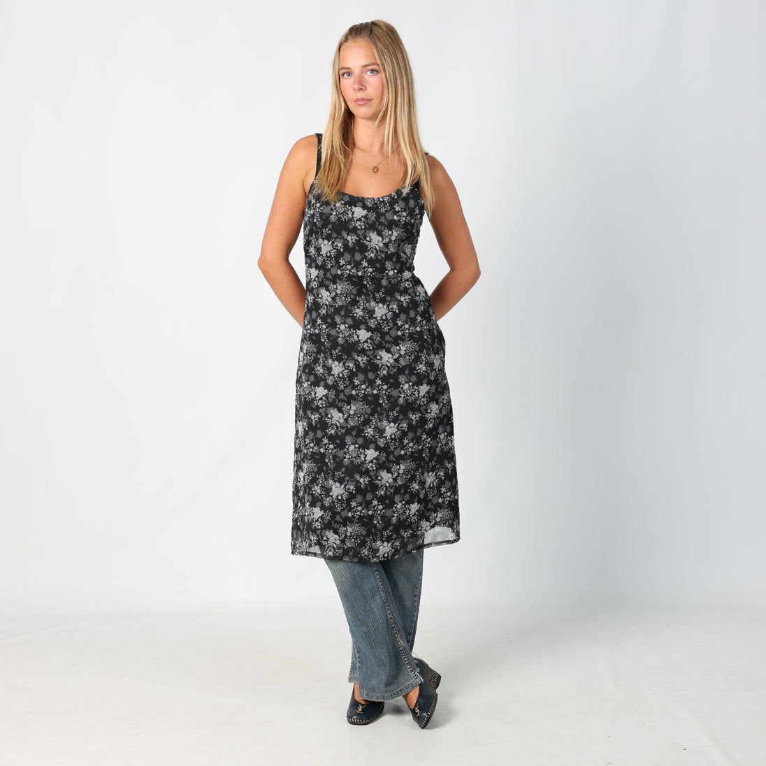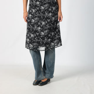 Black y2ks Motivi Printed Woven Midi Dress Floral (M)