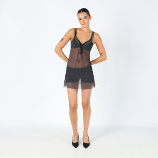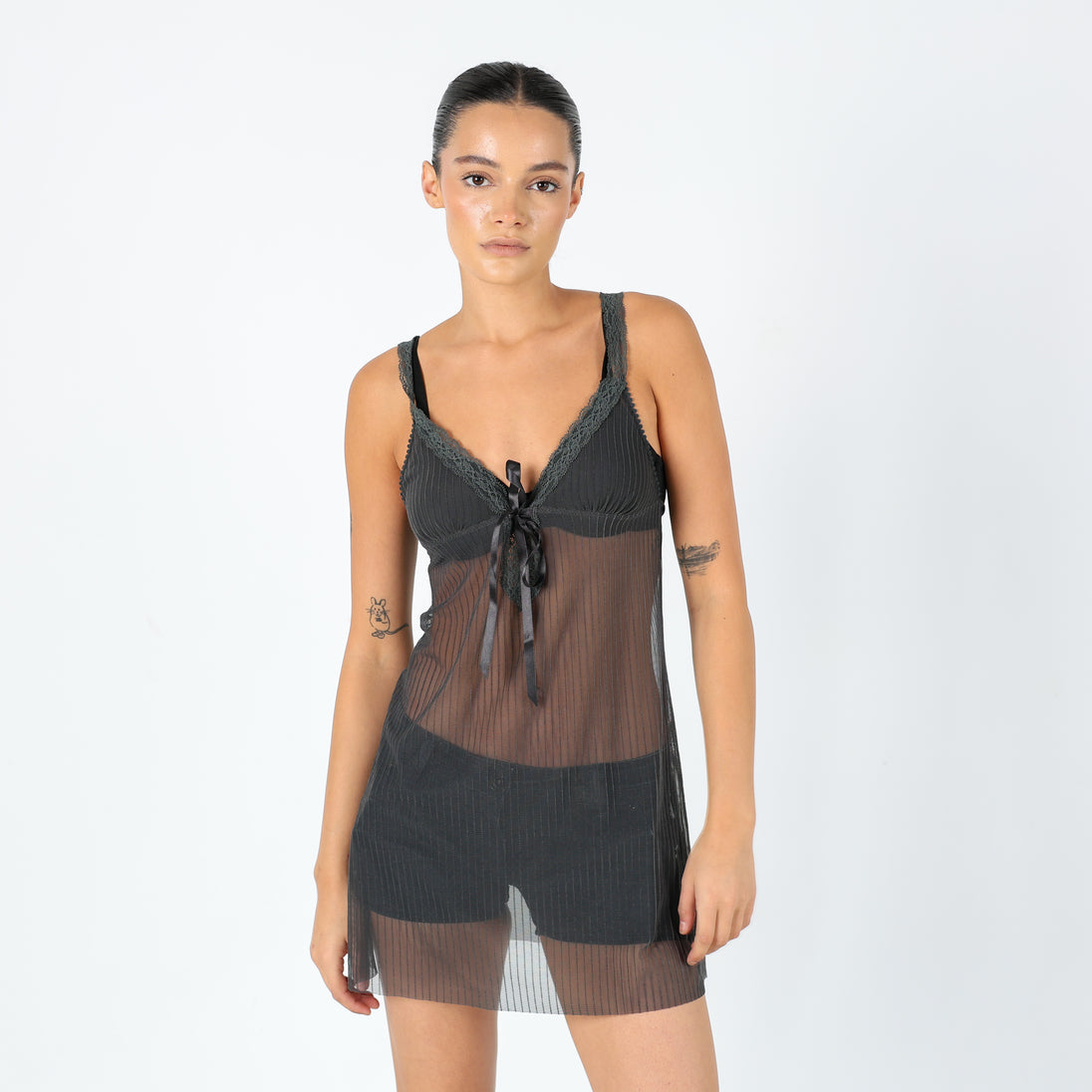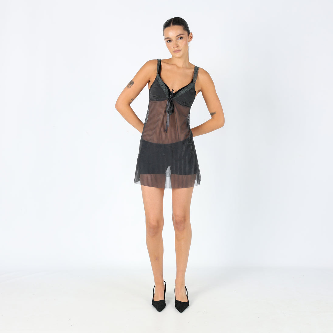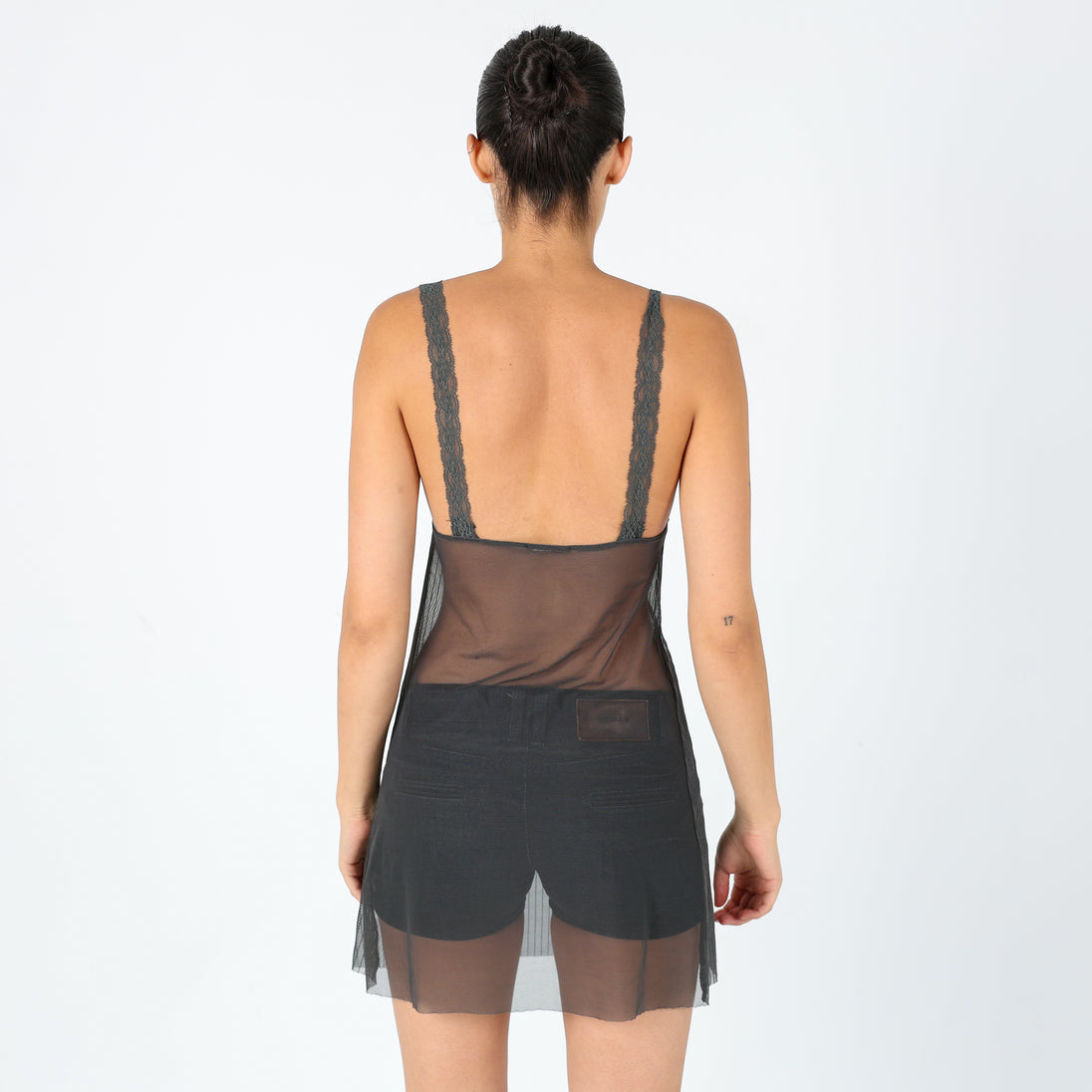Charcoal Grey 90s Tezenis Mesh Midi Dress Sexy Sheer Lace Detail (8)