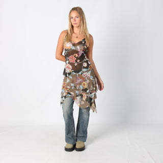 Dark Green y2ks Occhi Neri Mesh Midi Dress Sheer (M)
