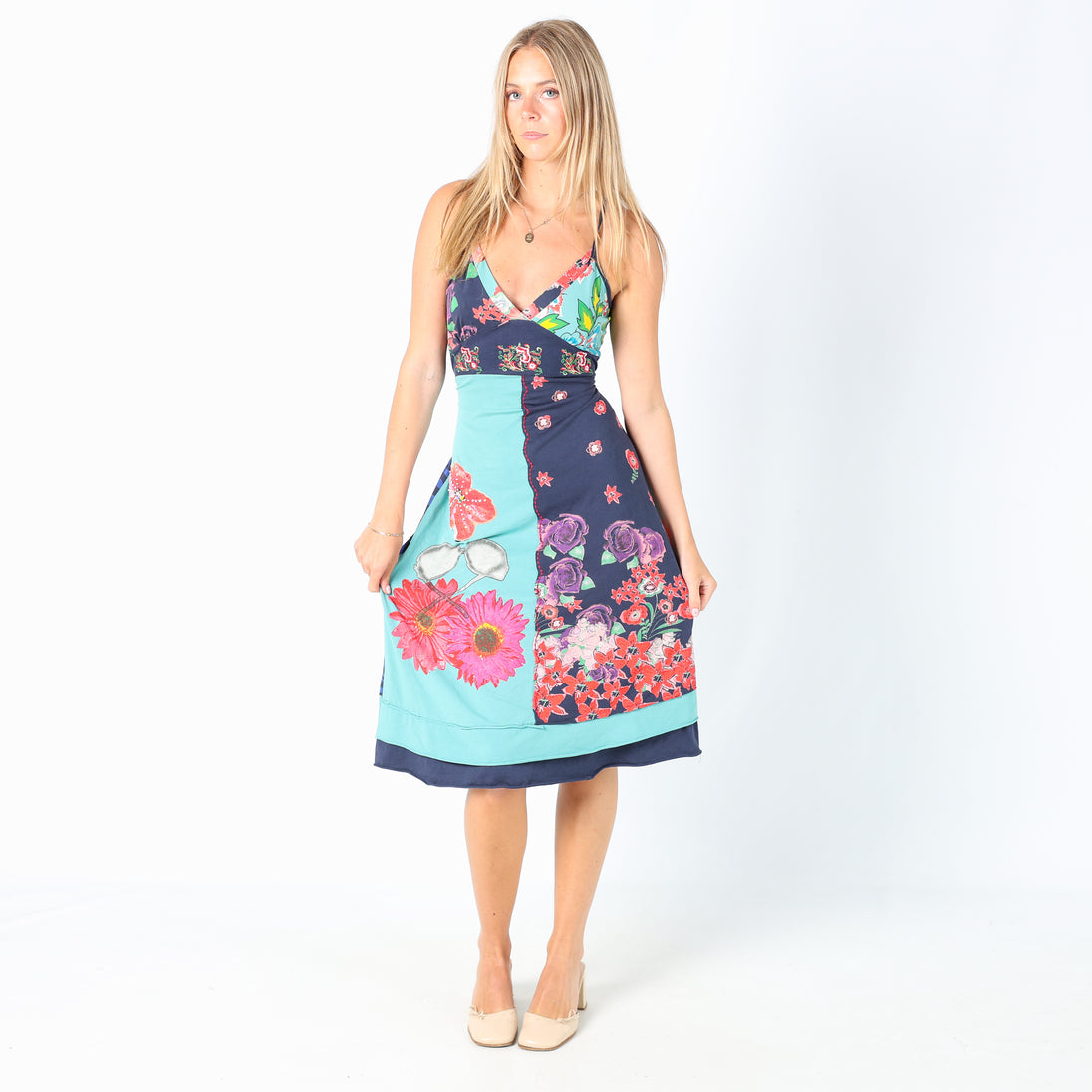 Turquoise y2ks Unbranded Embroidered Midi Dress Embroidered sequin detail (M)