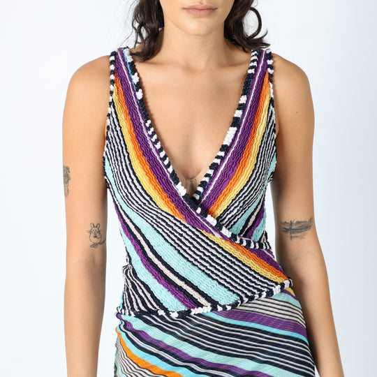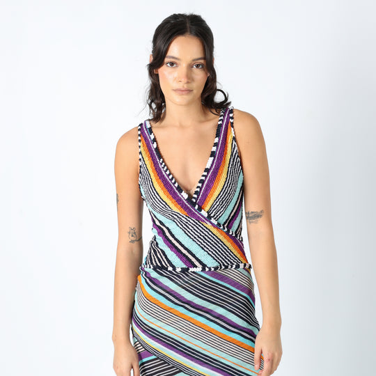 Multi Colured y2ks Missoni Woven Mini Dress Striped Front Wrap (8)