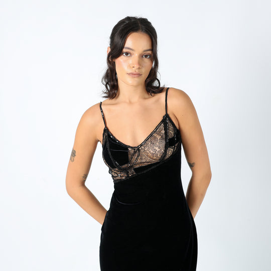 Black 90s La Perla Woven Mini Dress Sparkle Lace Detail Velvet (8)