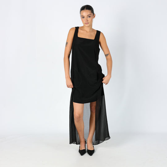 Black 90s Cop Copine Mesh Maxi Dresss Sheer Train (L)