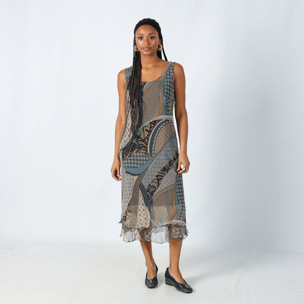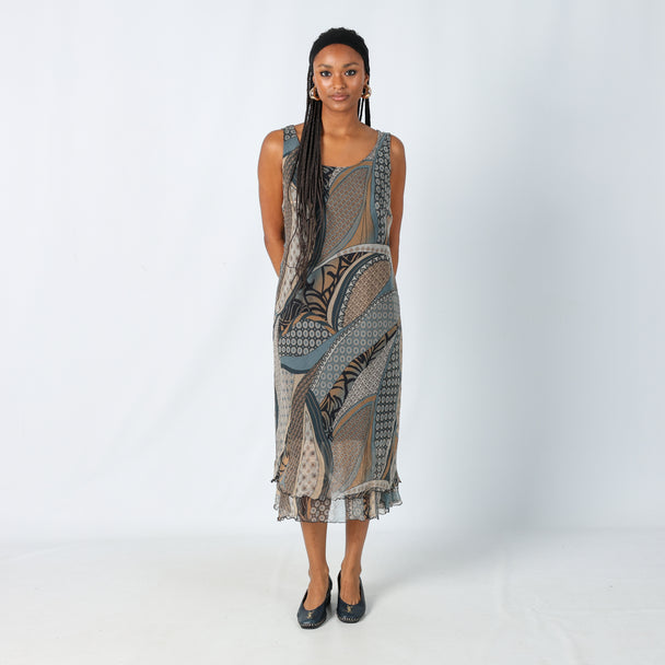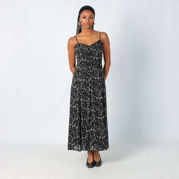 Grey 90s Lina T Printed Woven Maxi Dress (M)