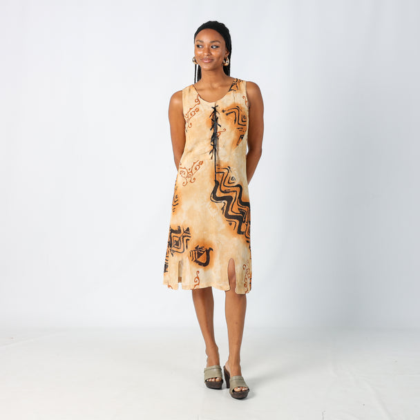 Brown y2ks Made in Italy Printed Woven Midi Dress (M)