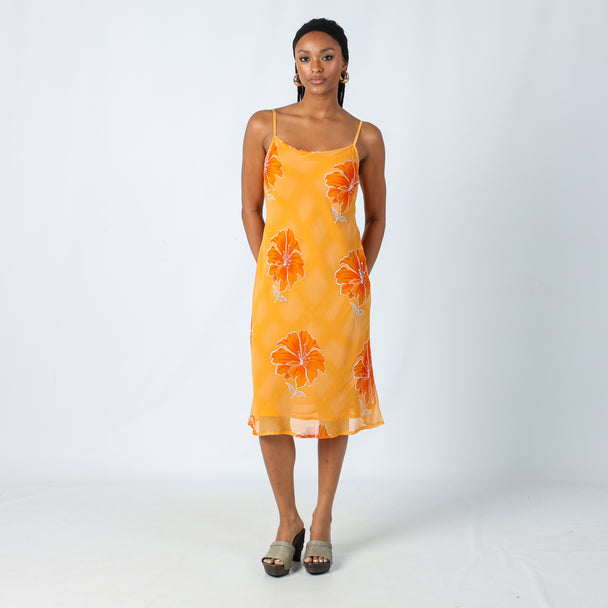 Orange y2ks Malvin Printed Woven Midi Dress Floral (S)