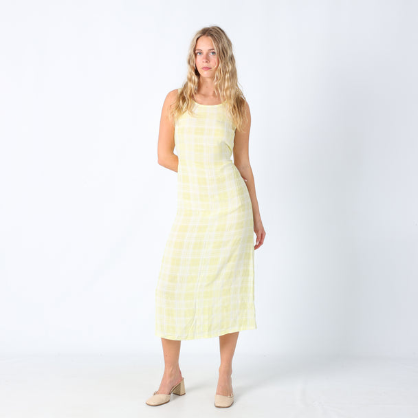 Yellow 90s United Colours of Benetton Woven Maxi Dress Semi Sheer (XS)