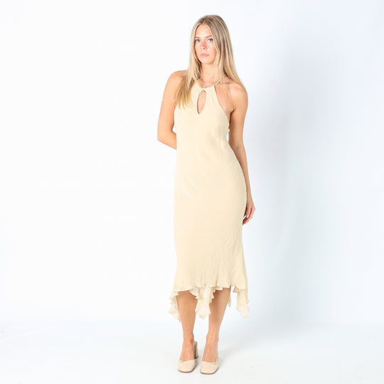 Cream 90s Background Woven Midi Dress (S)