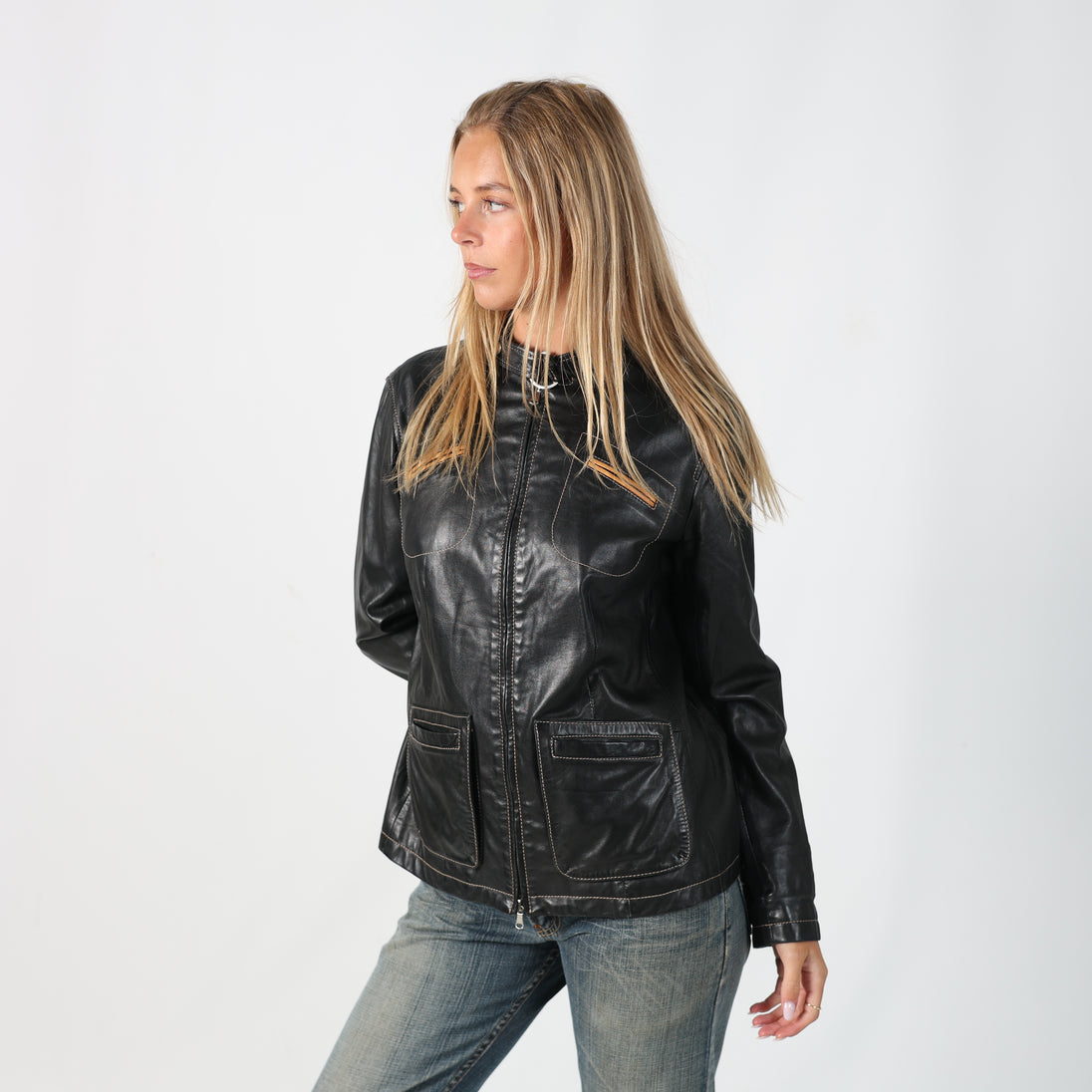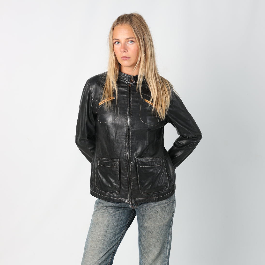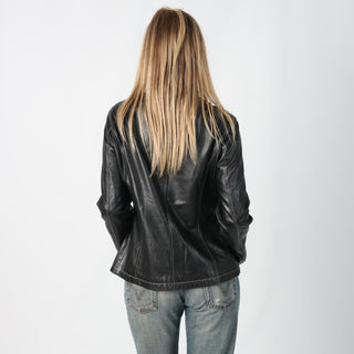 Black 90s Pakerson Leather Jacket Contrast Stitch (M)
