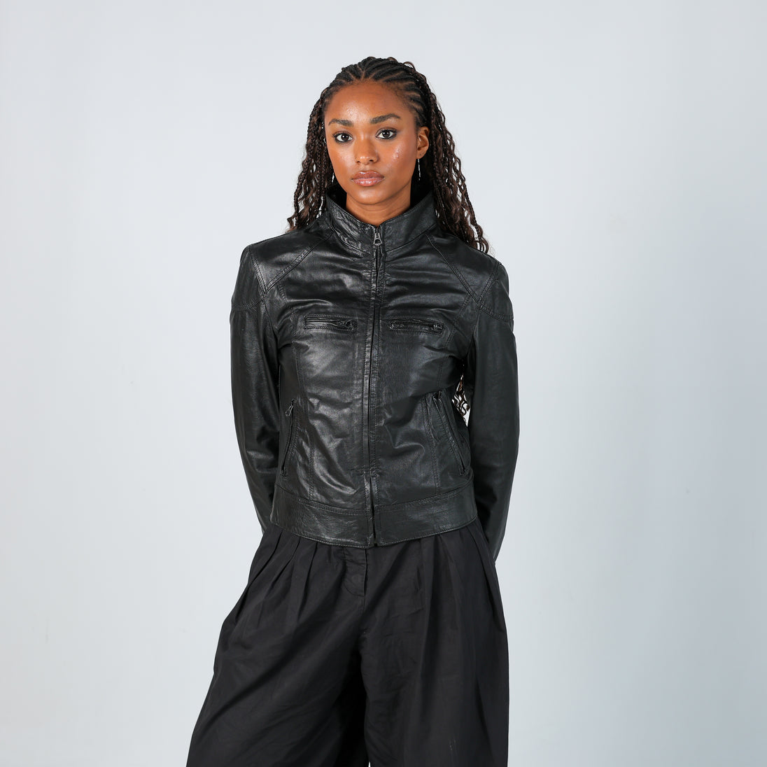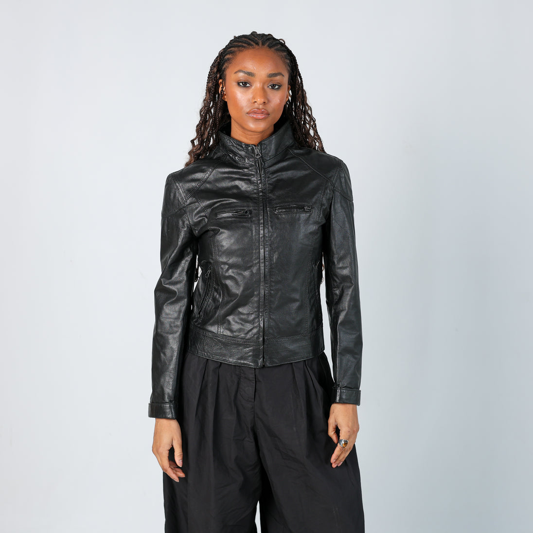 Black y2ks Vera Pelle Leather Jacket (S)